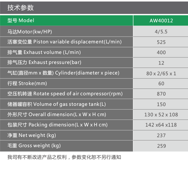 New energy saving and environmental protection AW40012 piston air compressor