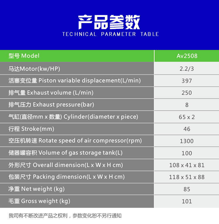 Product name:2.2KW 8bar new AV2508 piston air compressor