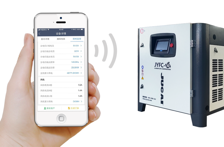 通過物聯網技術對空壓機設備進行全生命周期管理,遠程檢測,遠程管理,手機預警,數據采集等。