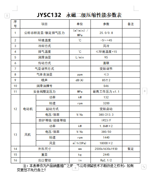 產(chǎn)品名稱:132kW 水平雙級直連永磁變頻空壓機(jī) JYSC132